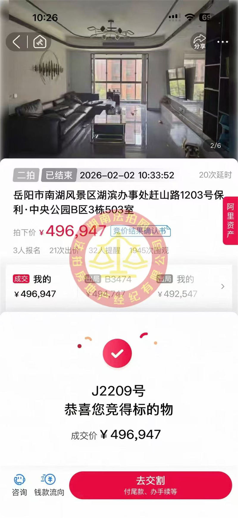 撿漏2套,恭喜小陳總撿漏洋湖和園(長沙)+保利中央公園(岳陽)法拍房2套,總撿漏金額幾十萬!